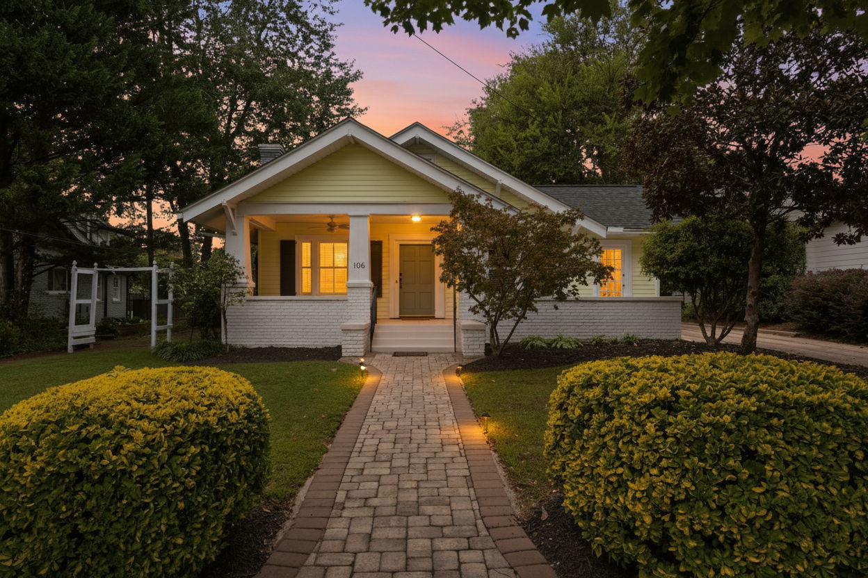 This historic 1916 craftsman style bungalow in the Augusta Road area offers over 3,100 square feet of flexible living space in one of Greenville’s most desirable neighborhoods. With a newer roof, updated HVAC, new hot water heater and a fully renovated kitchen, the home combines historic character with modern updates.The main level includes a large living room with fireplace, formal dining, a study, and three bedrooms including the primary suite. The kitchen features granite countertops, updated appliances, and connects to a breakfast nook and oversized laundry room. A dedicated dressing room adds extra storage and functionality. Upstairs, two additional bedrooms and a full bath provide plenty of room for family or guests. Multiple fireplaces, wide hallways, and original hardwood floors highlight the home’s craftsmanship. A family room off the back opens through French doors to a deck and a flat, fenced backyard—ideal for gatherings, play, or gardening. The backyard also includes a shed/workshop and plenty of off street parking. Outdoor living is just as inviting, with a wide front porch set on one of the broadest streets in the Augusta Road area. Zoned for Augusta Circle Elementary and only minutes from downtown Greenville, this home offers space, location, and community. Photos have been virtually staged.